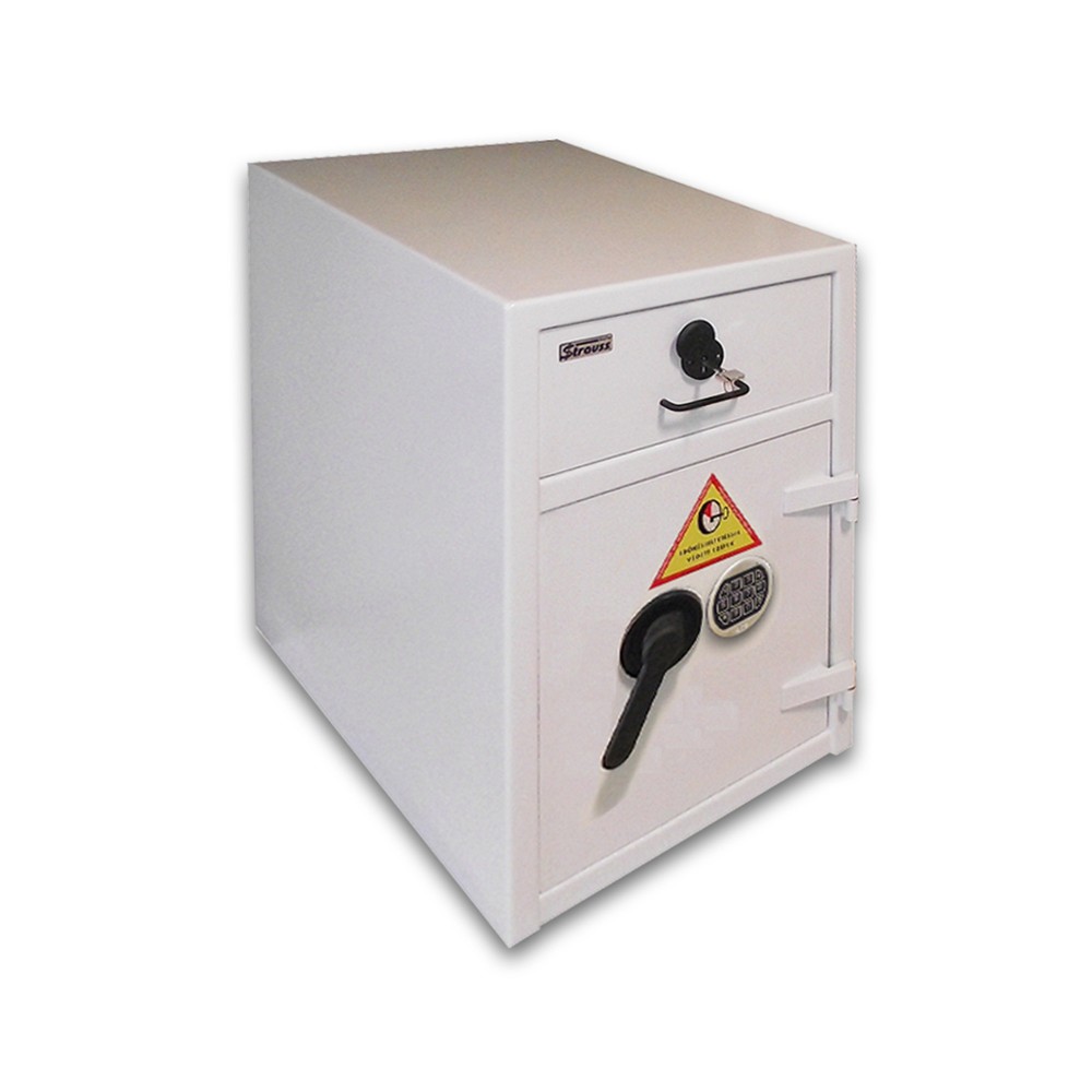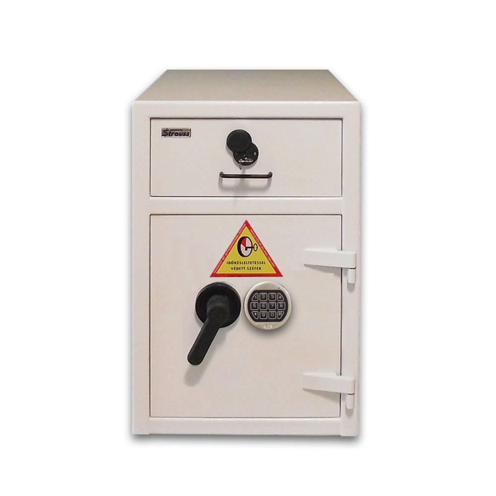 Egyfiókos kasszarésszel rendelkező időzáras széf nagyobb összegek széfnyitás nélküli biztonságos behelyezésére, tárolására.